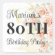 Hand Painted Pink Roses 80th Birthday Party Square Sticker