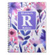 Hand painted purple flowers personalized monogram notebook