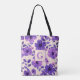 Hand painted purple flowers personalized monogram tote bag