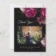 This elegant dark moody floral wedding thank you card features hand painted pink roses and a custom photo.