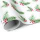 Hand Painted Watercolor Pine Wreath, Red Berries Wrapping Paper