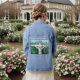 Modern Art Whites and Greens '' FOR GOD'' Denim Jacket . Embrace the feeling of spring with this unique Blue Jean Jacket. Featuring a breathtaking Painting on the Back, the scene depicts a striking White marble-like crucifix set against lush-forest greens. The beaming sun casts dramatic shows, enhancing the visual impact. Above the painting, the script on the denim reads, ''For God so Loved the World.......'' , with JOHN 3 ; 16 Written below the design, making this Jacket a profound statement piece. Enjoy your shopping Adventures!