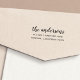 Chic return address stamp features your names or family name in hand lettered calligraphy script, with your return address displayed beneath.