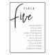 Hand Scripted Table FIVE + Guest Names Number