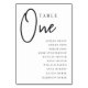 Simple and chic table number cards in classic black and white make an elegant statement at your wedding or event. Design features "table [number]" in an eyecatching mix of classic serif and handwritten script lettering, with individual guest names beneath. Design repeats on both sides. Individually numbered cards sold separately; order each table number individually from our collection.