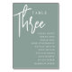 Hand Scripted Table THREE + Guest Names Number