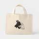 A wonderful bag of very sturdy, enduring material and good quality. It can carry a lot of weight without the seams tearing. The bag is a little larger than I expected, but I am utterly pleased with how it turned out, nevertheless. The black ink seems to be "soaked" into the fabric rather than being just printed "on top" of it. That means that the print can not simply be rubbed off, and I hope that - should I need to wash the bag - it will withstand the strain. The colour is (due to being "soaked" into the material) not quite pitch-black and shiny, but that is a fact that does not trouble me overmuch.