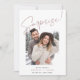 Haven't set the date yet, but can't wait to share the good news with family and friends? Announce your engagement with these simple and lighthearted photo cards, featuring a vertical or portrait-oriented photo with "surprise!" overlaid at the top in hand sketched lettering. Personalize with three lines of custom text along the bottom, including your announcement, names, and a note to stay tuned for further details.