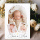Our gorgeous baptism thank you card is a beautiful keepsake designed to capture the precious memory of your baby's special day. This card features three custom photos of your little one: a main photo displayed in the center within an elegant white arch frame, with your baby's name showcased at the top in a graceful, semicircle font.