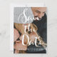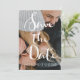 Hand Lettered Script Save the Date Photo Card. The photo and text of this hand lettered script can be updated and customized with your photo and name.