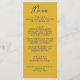 A colorful retro funky modern blue and yellow written menu . And hand drawn yellow and blue. Perfect and matching with the whole suite. wedding dinner menu. Which features chic template design of boho vintage yellow background and blue typography.
