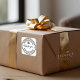 This stylish sticker is the perfect solution to show your appreciation to your customers. It features a clean black and white design, with a double border and concentric circles in the center, along with a beautiful cursive thank-you message and heart symbol to express your gratitude. The top reads "handcrafted with love" and the bottom reads "shop with us again," letting your customers know how much you value their business.