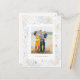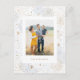 This New Years photo card features a hand-drawn fireworks border in white, blue and gold tones. The back is setup as a postcard for easy mailing.