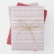 Handdrawn hearts gift wrap set, version 1 (small scale). Patterns feature pink hearts; with dark gray outlines on white background, one with red outlines on light gray background, and one with dark gray outlines on red background. Coordinates with the Pickup Line Valentine collection in my shop. Original designs, copyright Jennifer Kistler 2022.