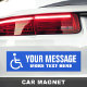Handicapped magnet sign with white disabled symbol on a blue background and template fields for your message.