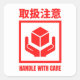 The Japanese script reads “toriatsukai-chuui,” which means “handle with care.” Handy when shipping fragile items to Japan. Also, great for people visiting Japan with musical instruments that require careful handling.