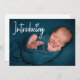 Celebrate the arrival of your little one with our stunning and elegant baby birth announcement card. This beautifully designed card features the word 'Introducing' in a sophisticated handlettering style font, accompanied by a charming heart, creating a perfect blend of modern style and heartfelt sentiment. Personalize this flat card with your baby's photo and birth details to make it truly unique and special.