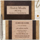 Business card with a "handmade" theme in a neutral setting. This business card features a dark faux leather area with cardboard text fields on a burlap background. Beautiful for anyone who is a professional craftsman or woman, an Etsy seller as well as a hobby lover.