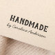 Rubber stamp featuring the text "Handmade" and customizable name below in a handwritten style script font.