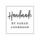 Rubber stamp featuring the text "Handmade" in a modern handwritten style script font and your name or other custom text below.