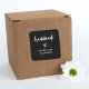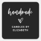 These stylish and chic black small business packaging labels feature white casual, modern script typography that says "handmade", along with an elegant matching hand-drawn heart and a place to add your company name. A look that is both stylish and professional, and perfect for any type of product, such as candles, apparel, crafts, and ceramics.