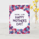 Designed with a bright white background, this Mother’s Day card centers the message “WISHING A VERY HAPPY MOTHER’S DAY!” in friendly purple lettering that stands out right away. The text sits in the middle of the front, giving it plenty of breathing room while still feeling surrounded by care ❤️. Around it, a thick floral frame of many small daisy-like blossoms curls along the edges like a gentle hug. The flowers appear in soft pinks, rich magentas, sky blues, deep purples, and crisp whites, each with a warm yellow-orange center that adds a sunny touch 🌼. Their layered shapes and mixed sizes create a subtle raised look, with tiny shadows that make the petals feel touchable. The overall arrangement feels like a bouquet offered with affection, with the border leaning inward as if to draw your eyes back to the message. The flowers form an organic ring near the card’s perimeter, leaving the central area open while the colorful petals cluster more densely at the corners.