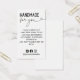 Washing instructions insert card for your small business of handmade goods. Handmade for you written in a charming combo of vintage font and script with a heart. Add washing instructions in black. Beneath black social media icons, your social media handle.