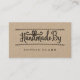 Perfect business card for tailors, seamstress, sewing businesses, or individuals making handmade handcrafted goods, products. Design features "Handmade By" with the letter "d" created to look like a ribbon bow. "Handmade by" displayed in a stylish handwritten style text pairing. Personalize with your name, contact information, website, and social media info. Note: colors can be changed in suit your design preference and brand image. Artwork by Moodthology.