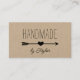 Rustic brown kraft business cards for your handmade, artisan, or craft business feature two lines of custom text on the front in handwritten style block and script lettering, bisected by a black heart and arrow illustration. Add five lines of custom text to the reverse side in matching fonts, accented with a tiny heart illustration.