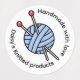 Blue ball of wool with two knitting needles with red ends sticking through it. Text templates on either side of the yarn to personalize these labels. Ideal for handmade knitted products.