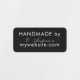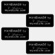 A label for your handmade products or art. Personalize and add your name and website address. Black background, white text. You can change the background color and the text color to match your brand. You can choose one color per row, 4 rows.