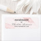 A label for your handmade products or art. Personalize and add your name and website address. Blush pink marble stone print as background, black text.
