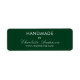 A label for your handmade products or art. Personalize and add your name and website address. Emerald green background, white text. You can change the background color and the text color to match your brand.