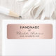 A label for your handmade products or art. Personalize and add your name and website address. Rose gold gradient background, black text.