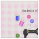 Designed for all those crafty people who love quilting, an uncut fabric custom label with a cute vintage sewing machine illustration. The label covers a 9 x 9 inch area approx, which will give you six labels in a fat quarter; but feel free to hit customize and change the size up or down. Shown here with the words "Handmade With Love - Nancy Green in 20xx" just change the name and date to customize it with your personal details or change all the words to suit your needs.