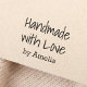 Rubber stamp featuring the text "Handmade with love" in a handwritten style font and your name below.