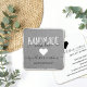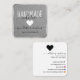 This simple, rustic, and cute business card is perfect for the home crafter, Etsy shop owner, or art fair creative. It features handwritten script font in black and white that says, "Handmade with love by (store name)," on top of a minimal and chic faux printed silver foil border and gray kraft paper background. It's modern, elegant, sweet, and unique; the perfect design for your customers.