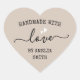Light mocha brown, heart shaped stickers with the text "handmade with love" and your custom name. The word "love" is written in an elegant calligraphy script font and the rest of the text in a vintage typewriter style font. Use as envelope seals, stickers for gifts and favours, product packaging etc. Follow us on Facebook: @businessstationery for more products, news, sales and more.