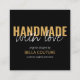 Handmade with love black square business card with modern oversized typography. Handmade with love is lettered with headline print and overlapping handwritten script. The template is set up for you to personalize with your name and/or company name, tagline(s), contact details and social media. Feel free to customize as required. This business card has a luxury color palette of black, white and gold.