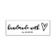 Personalize your homemade products with a custom stamp featuring a whimsical "handmade with" text and a heart illustration coupled with your own elegant script monogram. Choose between different ink colors and check our store for more matching items.