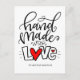 ©2017, Dio Perez ~ Hand lettered design reads: "Hand Made with Love" ~ This card is great to include inside your packages containing hand crafted goods. Great for small business who ship handmade items all the time. Tuck this card inside the tissue paper containing your handmade items, and include a short handwritten note of gratitude on the back side. It's the little details like these that make a lasting impression with your lifetime customers.