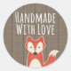 Handmade With Love Red Fox on Rustic Wood Kids Classic Round Sticker