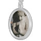 I chose gold plated so that the metal would not react with my skin oils and perspiration. But, I changed the necklace from the gold plated one to a sterling silver. My skin cells will tarnish the silver. But it will not look as bad if some portion of the gold plated necklace somehow became compromised. Zazzle did a find job turning the picture into a pendant for me. As you can see, the colors and the printing of the final product, match the preview. The picture I took is not very clear. But I am pleased with the product I received.