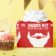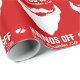 Christmas wrapping gift paper in warm red and white. Reads HANDS OFF until December 25th, fun bold Santa's / father Christmas's famous beard and a no touching hand sign graphic patterned Christmas print. Graphics and design by Sarah Trett.