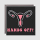Show your support for women's right to choose with this car magnet featuring a pink and gray uterus graphic with "hands off" text on black background