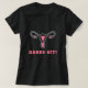 Show your support for women's right to choose with t-shirt design featuring a pink and gray uterus graphic with "hands off" text on black background