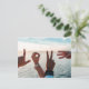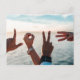 Two people spell "Love" with their hands in front of the ocean and a blue sky, in this lovely photo. Enter your own addressing info on the back. [Photo by Tyler Nix on Unsplash]