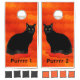 Enjoy your game with two super handsome black cats. Especially for cat lovers. Bright shades of orange glowing background. Orange pillow clouds. Your text. Perfect for fall and Halloween or any time. Original photography and design by Anura Design studio.