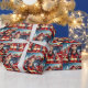 This handsome Caucasian firefighter stands with a fire truck to create a fun holiday wrapping paper for gift giving with a festive theme and gift wrap you won't find anyplace else on the planet.