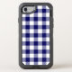 Protect your iPhone 8/7 from drops with a rugged OtterBox case featuring a handsome navy and white buffalo plaid and a window to showcase the Apple logo. Dark blue, white, and light blue squares form a bold checked pattern.